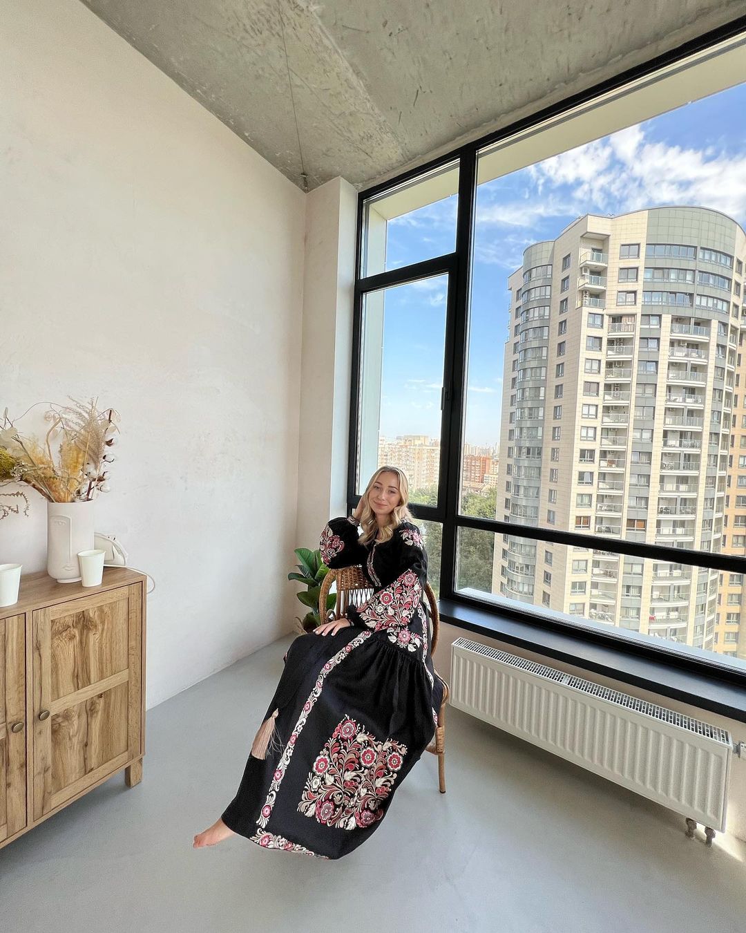 Дружина Віктора Павлика Катерина Репяхова на честь свята вбралася у розкішну чорну сукню з квітковою вишивкою у червоному та білому кольорах.