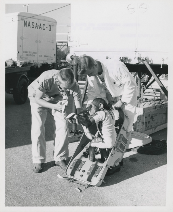 Шимпанзе Хем перед суборбітальних космічних польотом, 1961