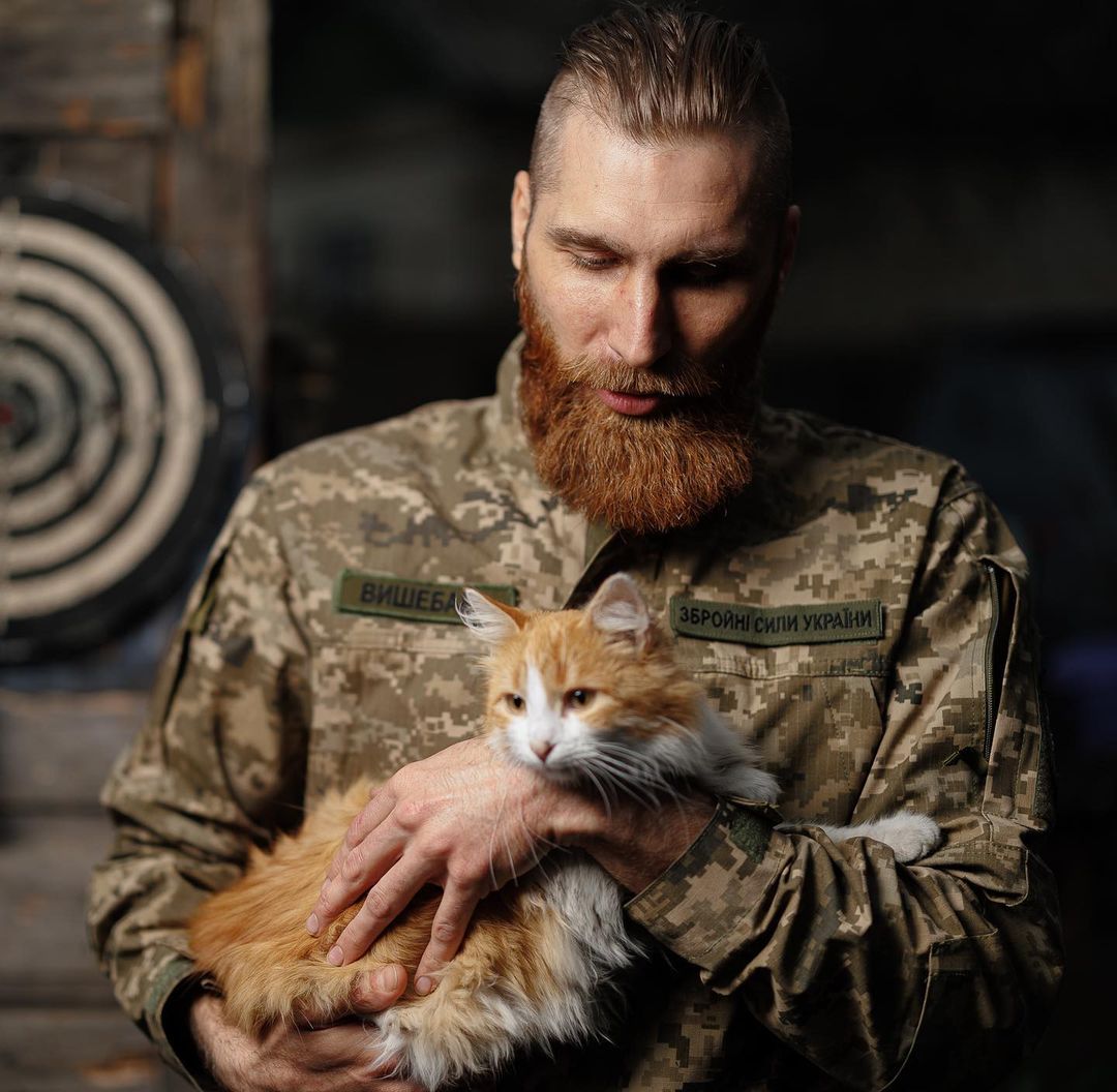 Воїни ЗСУ – не просто блискучі майстри своєї справи, а й люди з великим добрим серцем. На позиціях українських військових живуть домашні тварини, а дехто переміщується з ними по лінії фронту. Захисник і поет Павло Вишебаба показав кошеня, яке народилося на початку повномасштабної війни, і з яким він зараз не розлучається.
