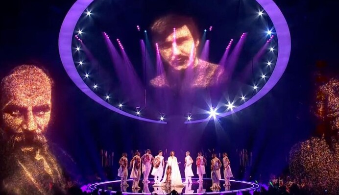 Українка постала у довгій білій сукні. Під час її виступу сцена підсвічувалася синьо-жовтими кольорами, а також за допомогою спецефектів єврофани змогли побачити портрети знаменитих українських митців.