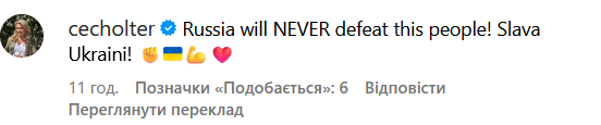"Росія ніколи не переможе цей народ! Слава Україні!", - написала вона в коментарях.
