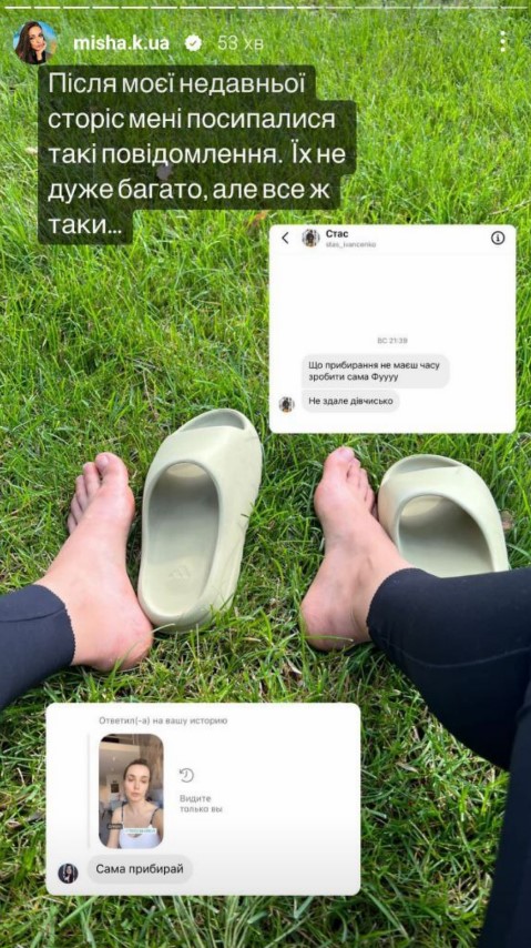 Мішина відреагувала на критику в свою адресу. Акторка відповіла, що це її життя і лише їй вирішувати, як для неї буде краще. Цього принципу вона радить дотримуватися і своїм підписникам.