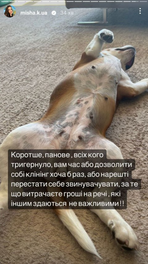 "Всі, кого це зачепило, вам час або дозволити собі клінінг хоча б раз, або нарешті перестати себе звинувачувати за те, що витрачаєте гроші на речі, які іншим здається неважливими! Це ваше життя, і тільки вам вирішувати, як його зробити кращим", - підсумувала Ксенія.