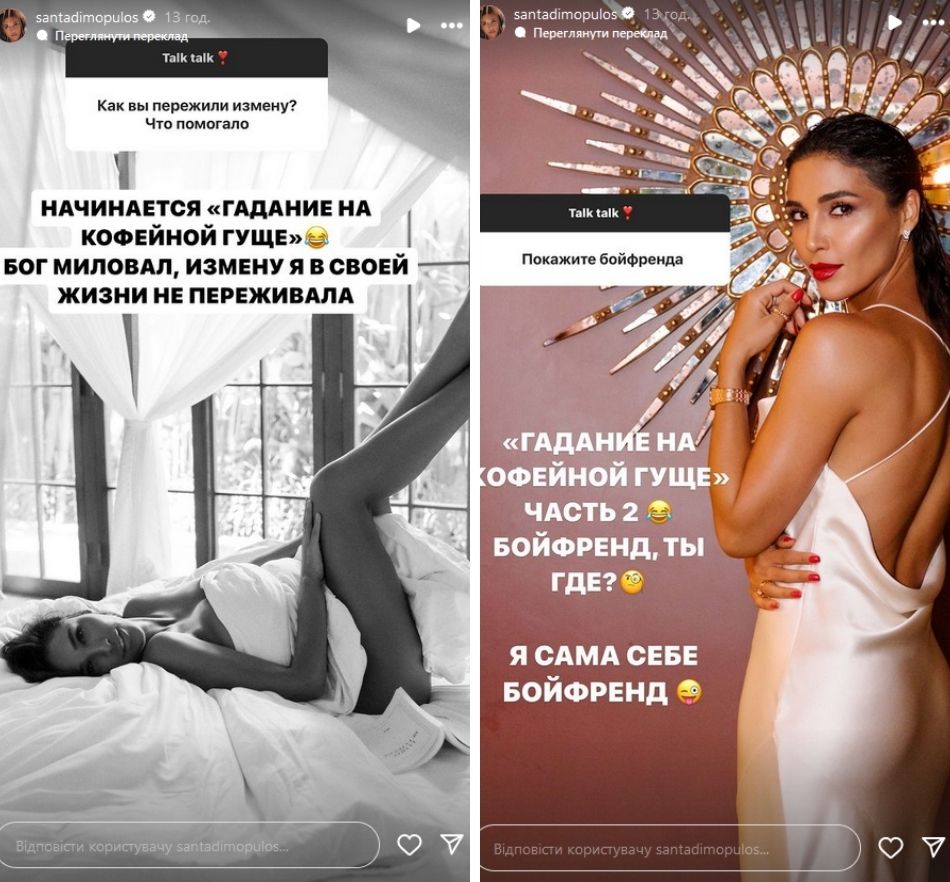 Днями Санта Дімопулос оголосила про розлучення з чоловіком, бізнесменом Ігорем Кучеренком. Розставання пари після 11 років подружнього життя стало приводом для появи різних чуток, зокрема стосунків поза шлюбом.