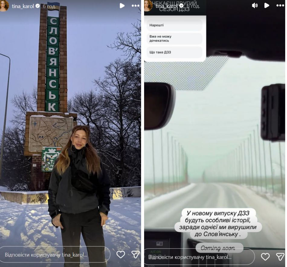 Схожий кадр із цього ж місця артистка розмістила й у власному профілі. А також показала відео з антидронового тунелю, пояснивши, що приїхала до Слов'янська для роботи над новими випусками свого YouTube-проєкту "Дім звукозапису".