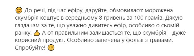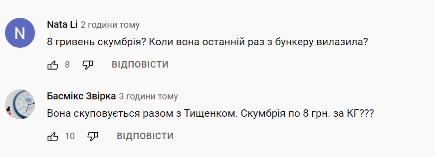 "8 гривень коштує голова від скумбрії, а не скумбрія. Лєна, кажеш якісь нісенітниці".