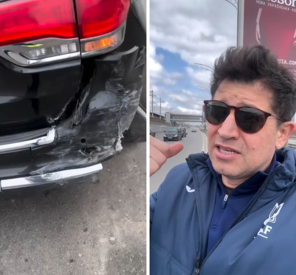 У відео Джеджула розповів, що його автомобіль стояв біля повороту на Дарницький міст, коли інший водій не впорався з керуванням і в'їхав у нього.