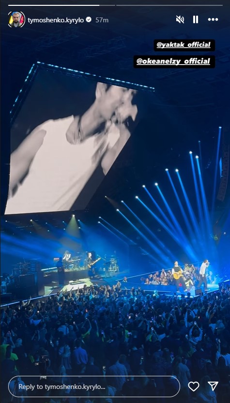 Радник міністра оборони України Кирило Тимошенко із сім"єю відвідав 15 жовтня 2024 року концерт гурту "Океан Ельзи" зі Святославом Вакарчуком у київському Палаці спорту.