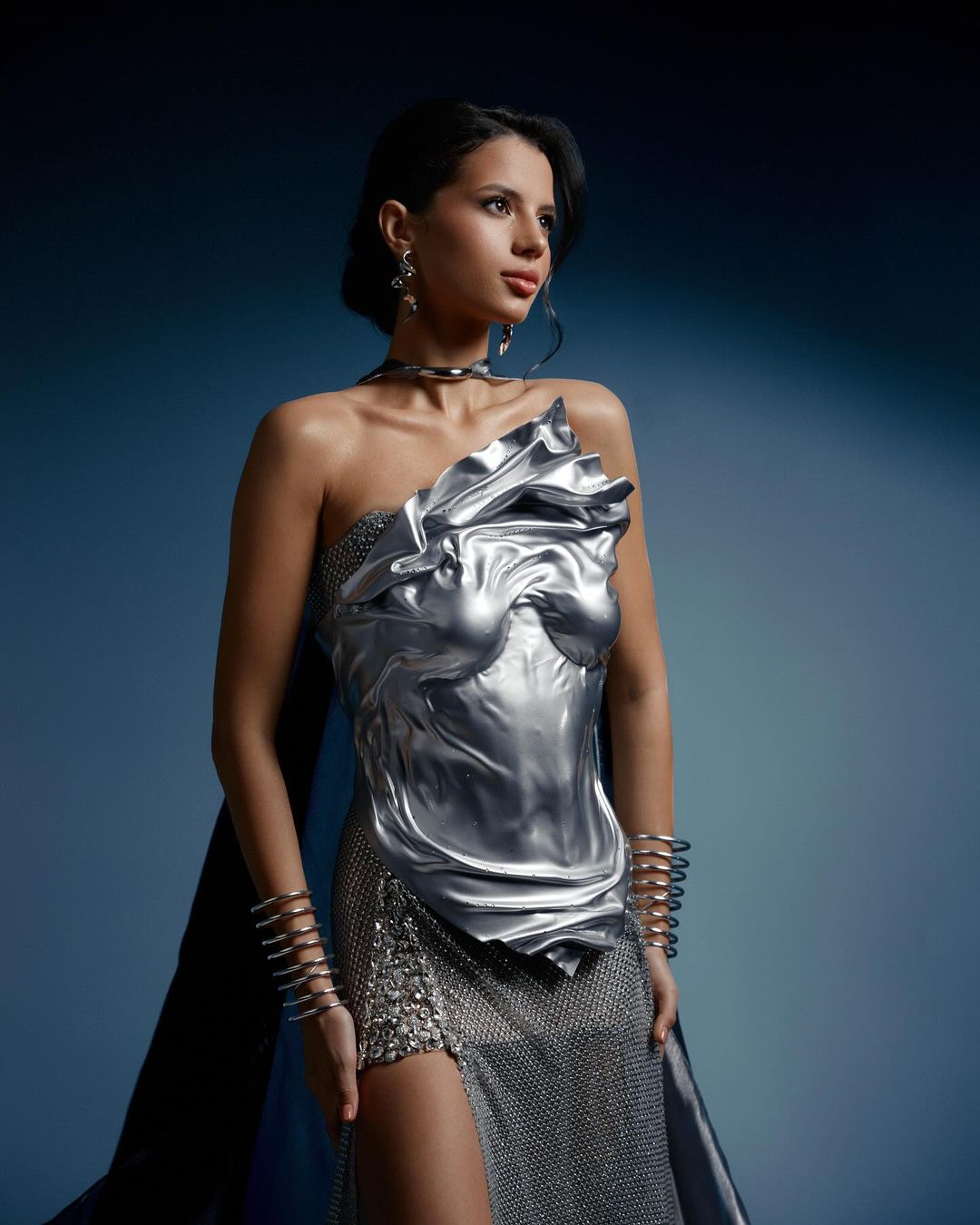 Як розповіли на сторінці "Міс Україна" в Instagram, автором образу "Сталева леді" став український дизайнер Андрій Анікєєв. В оргкомітеті наголосили, що модельєр прагнув створити сукню, яка передасть незламний, як сталь, дух українців.