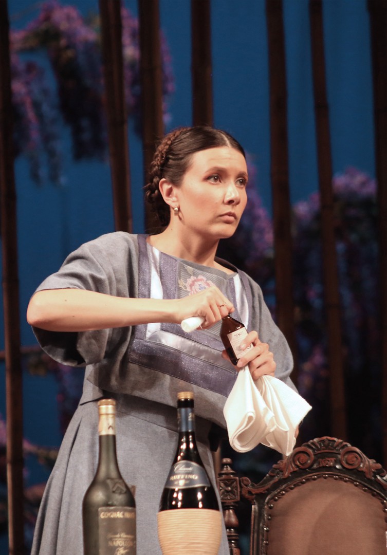 На рахунку актриси чимало ролей у спектаклях, таких як "Майстер", "Колір жакаранди", "За зачиненими дверима", "Дамський кравець", "№ 13", "Загадкове нічне вбивство собаки" тощо.