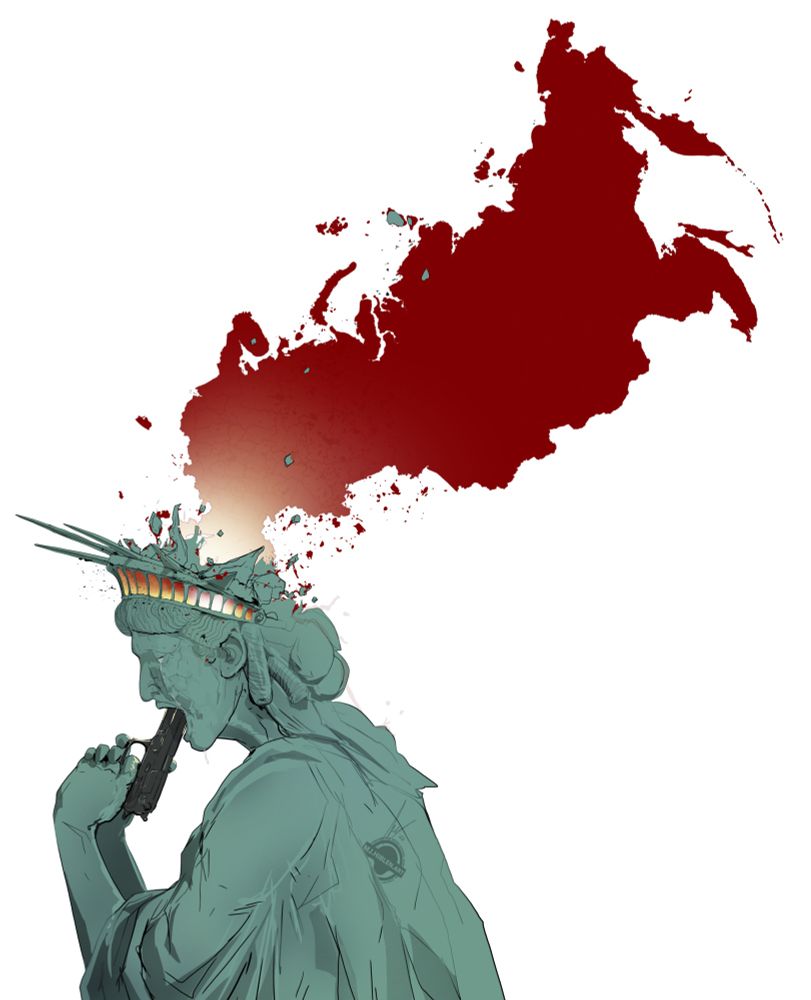 Американський художник-ілюстратор, автор коміксів з ніком MJ.Hiblen зобразив Статую Свободи, яка вчиняє самогубство.