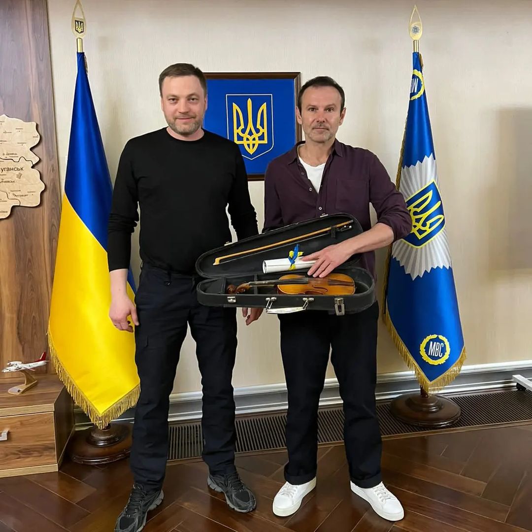 Святослав розповів, що коли вони зустрілися, то міністр внутрішніх справ виніс йому маленький футляр, в якому була старенька дитяча скрипка. Виявилося, що цей музичний інструмент із харківської школи, яку розбомбили окупанти. Скрипка дивом вціліла. Вакарчук зізнався, що це був один із найзворушливіших подарунків, які він отримував за все своє життя.
