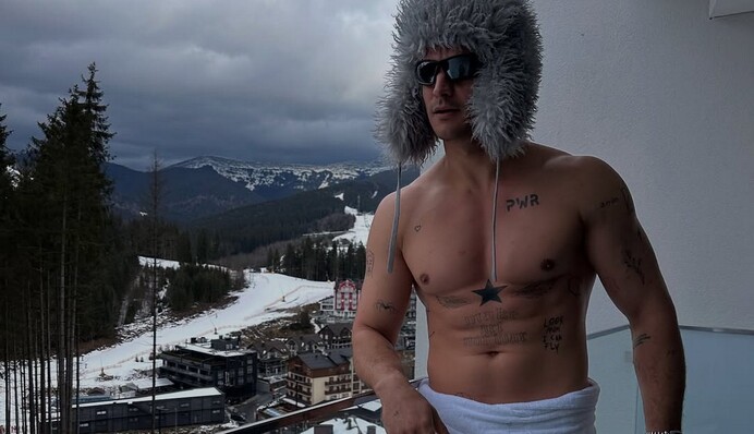 В Instagram актор опублікував серію фото, зроблених на терасі апартаментів одного з елітних готелів, і нарвався на хейт. У кадрі зірка серіалів "Спіймати Кайдаша" і "Чорний ворон" позує напівоголеним. На ньому - махровий рушник, обгорнутий навколо талії, шкарпетки і хутряна шапка акторки Олени Світлицької.