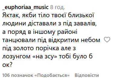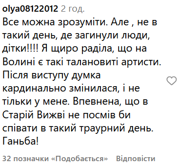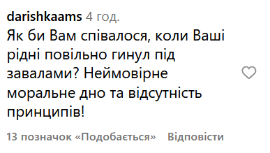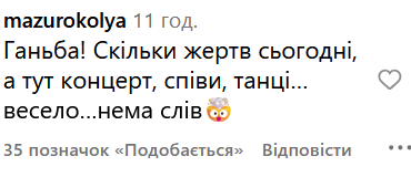 Однак вибачення співака не змінили ситуації - у коментарях і далі засуджують його виступ в день, коли столиця переживала наслідки нищівної атаки РФ та оплакувала невинних жертв.