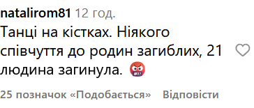 Виступ співака в день, коли в столиці після нищівної нічної атаки розбирали завали та діставали людей, назвали "танцями на кістках". Обурені українці залишають десятки критичних коментарів під відео з концерту, які миттєво розлетілися соцмережами і Telegram-каналами.