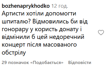 Хоча захід позиціонували як благодійний з метою збору коштів на ремонт палат у військовому госпіталі, багато людей наголошують: концерт слід було перенести, адже його проведення в день цинічного російського удару виглядає як зневага до пам'яті загиблих.