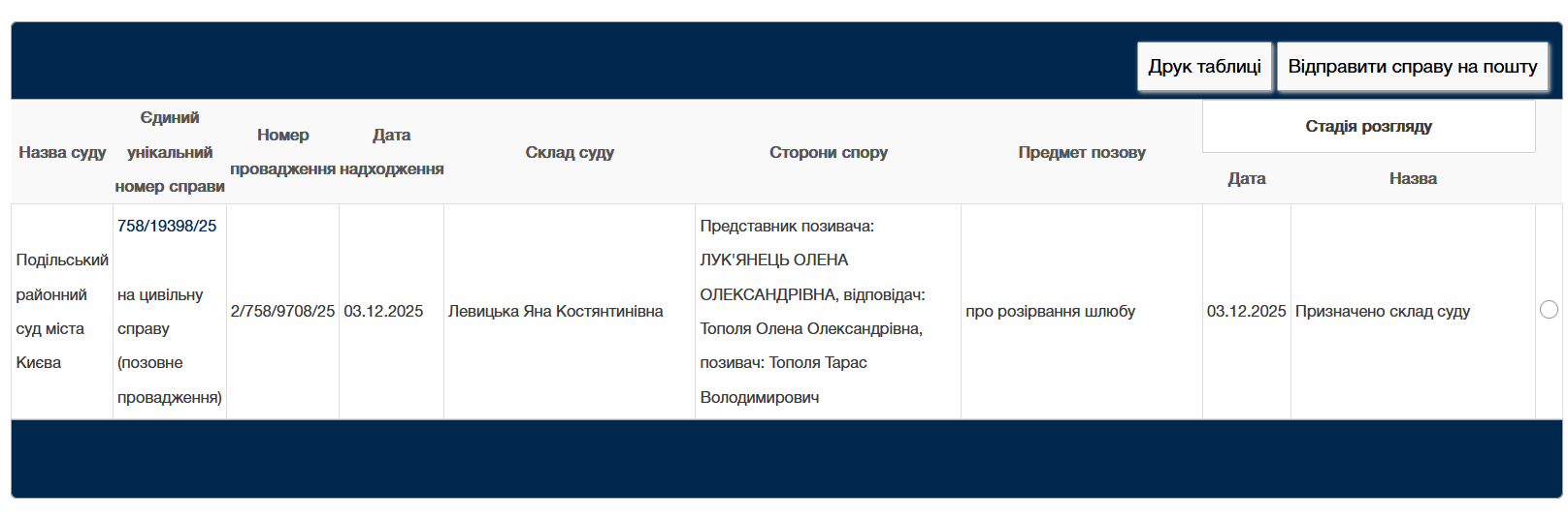 У Єдиному державному реєстрі судових рішень з'явилася справа зіркового подружжя, ініціатором якої виступив музикант. Заява на розлучення зареєстрована 3 грудня в Подільському районному суді Києва. Дата проведення засідання наразі невідома.