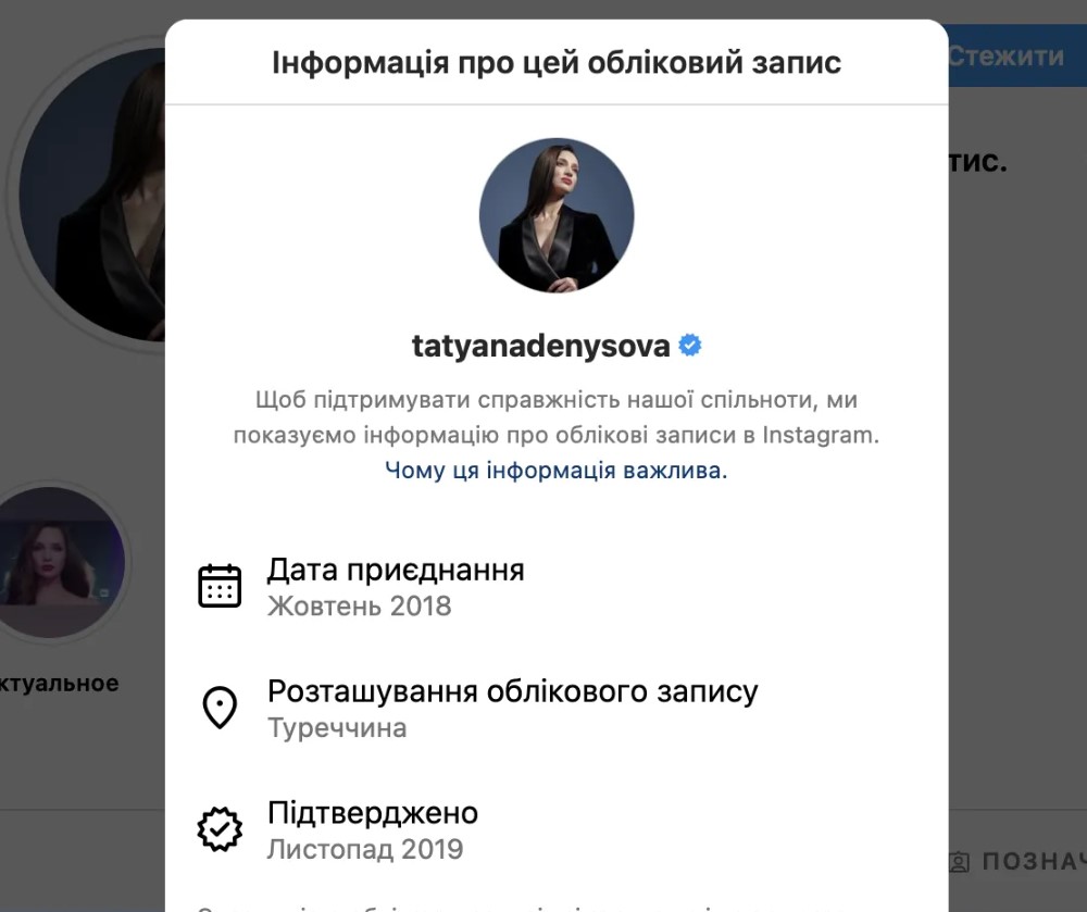 Однак якщо зайти на Instagram сторінку зірки, то у рядку "Інформація про обліковий запис" можна побачити, що востаннє власник профілю знаходився у Туреччині. Щоправда, дана геолокація може свідчити, в якій країні була зареєстрована сторінка.