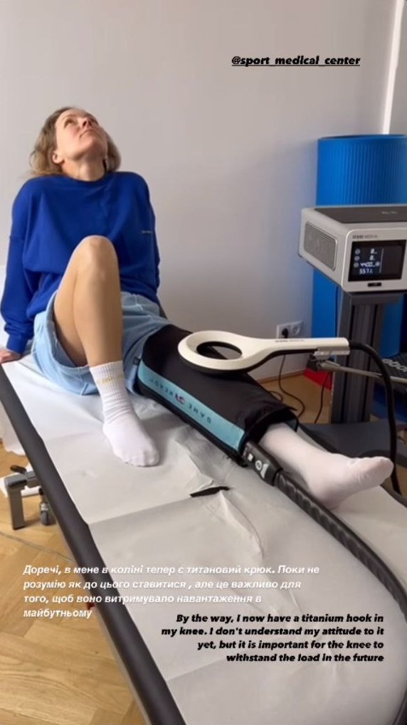 У наступній "сторіз" Шоптенко показала, як проходить післяопераційний огляд в австрійській клініці та поділилася, що медики встановили в її травмоване коліно титановий гак.