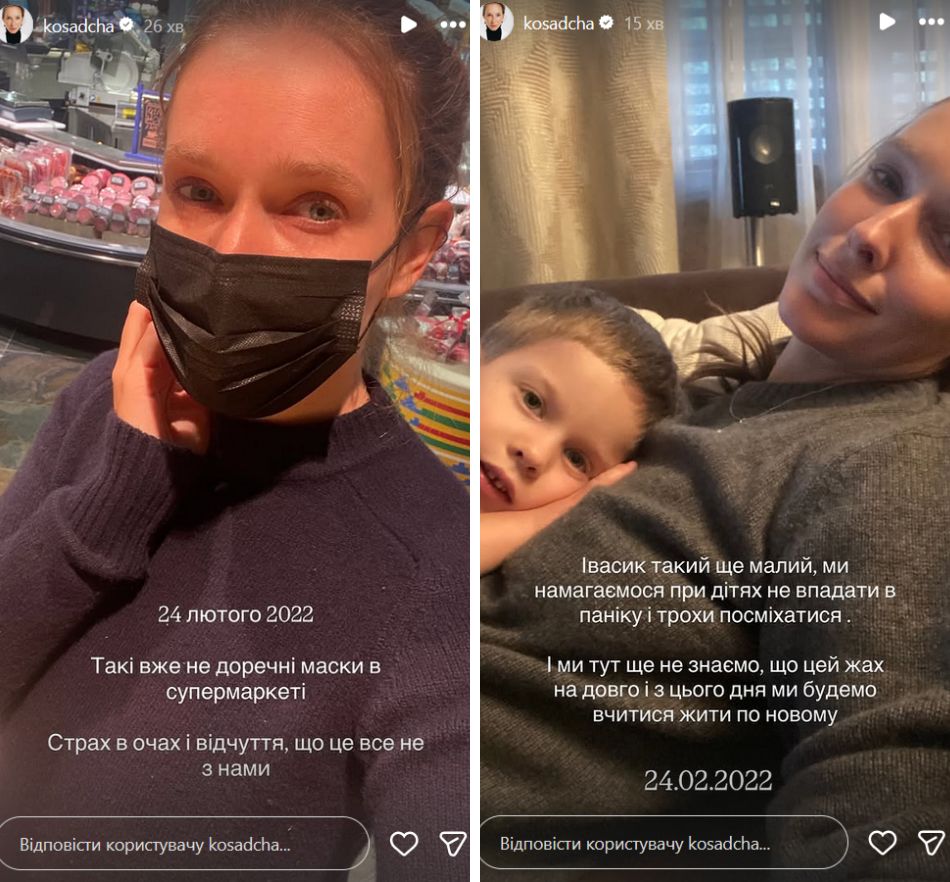"24 лютого 2022. Такі вже недоречні маски в супермаркеті. Страх в очах і відчуття, що це все не з нами. Івасик такий ще малий, ми намагаємося при дітях не впадати в паніку і трохи посміхатися. І ми тут ще не знаємо, що цей жах надовго і з цього дня ми будемо вчитися жити по-новому", - написала телеведуча.