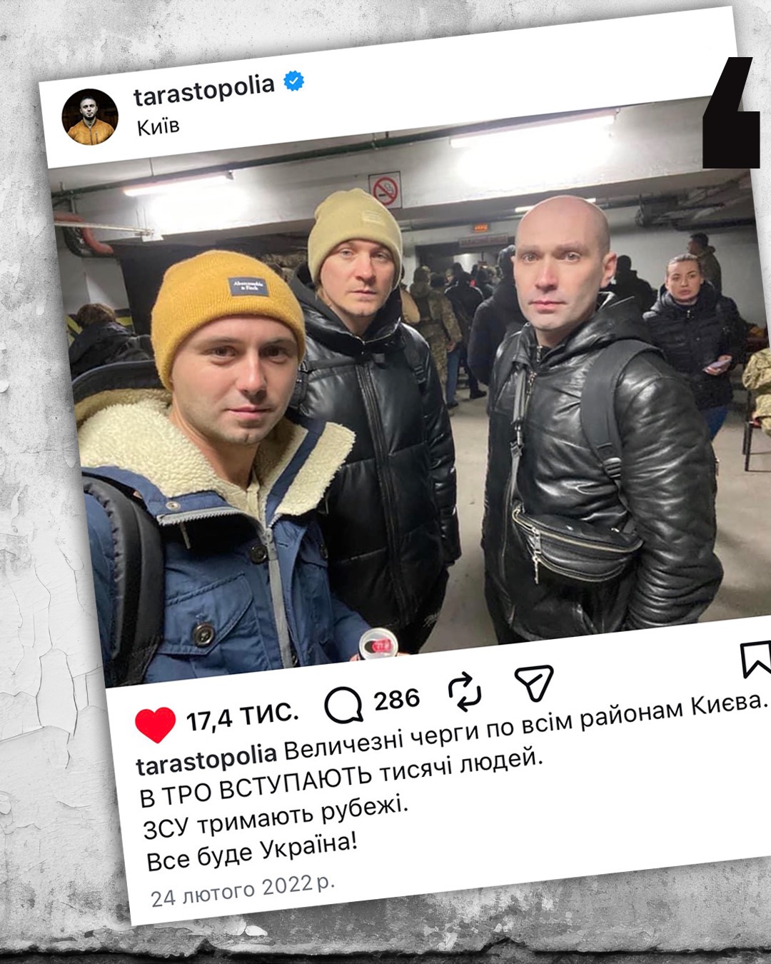 "Того ранку ми прокинулися іншими. Можливо, це й добре, що ми в той момент повною мірою не усвідомлювали, що на нас усіх чекає далі. Проте ми точно знали, що вчиняємо правильно - як і десятки тисяч добровольців по всій країні. Четвертий рік супротиву, четвертий рік боротьби - але ті перші дні перед очима, ніби вчора. Як і в той перший день, віримо й впевнені, що все буде Україна!", - написали учасники колективу, які на початку війни долучилися до війська.