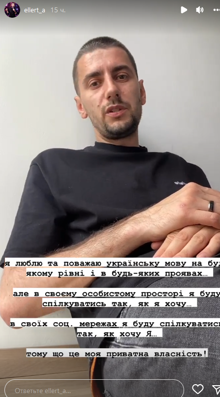 Днями Олександр Еллерт написав різкий допис про українців, які під час війни будують бізнес на чужому горі і утискають своїх же за російську мову. Йшлося про деяких орендодавців та мешканців західної України. Публікація коміка викликала хвилю обурення івін вирішив записати відповідь.