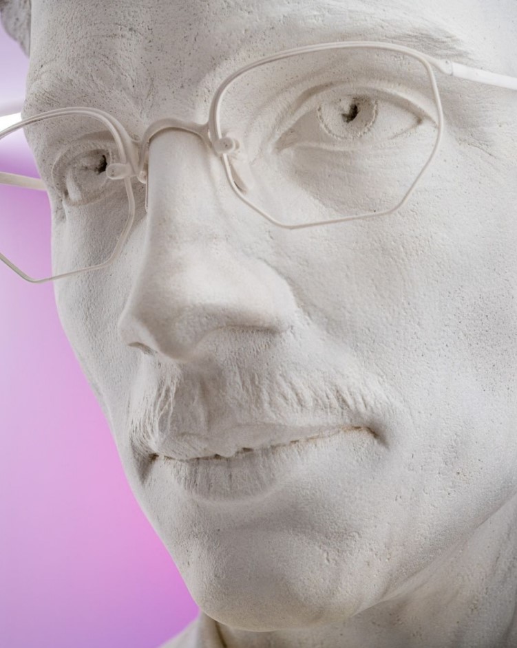Скульптура зображує персонажа в культовій позі, завислого між амбіцією, іронією та героїчною напругою, перетворюючи Марті на міфічну постать – щось середнє між попчемпіоном і сучасним антигероєм.