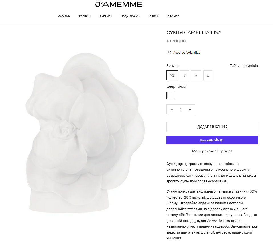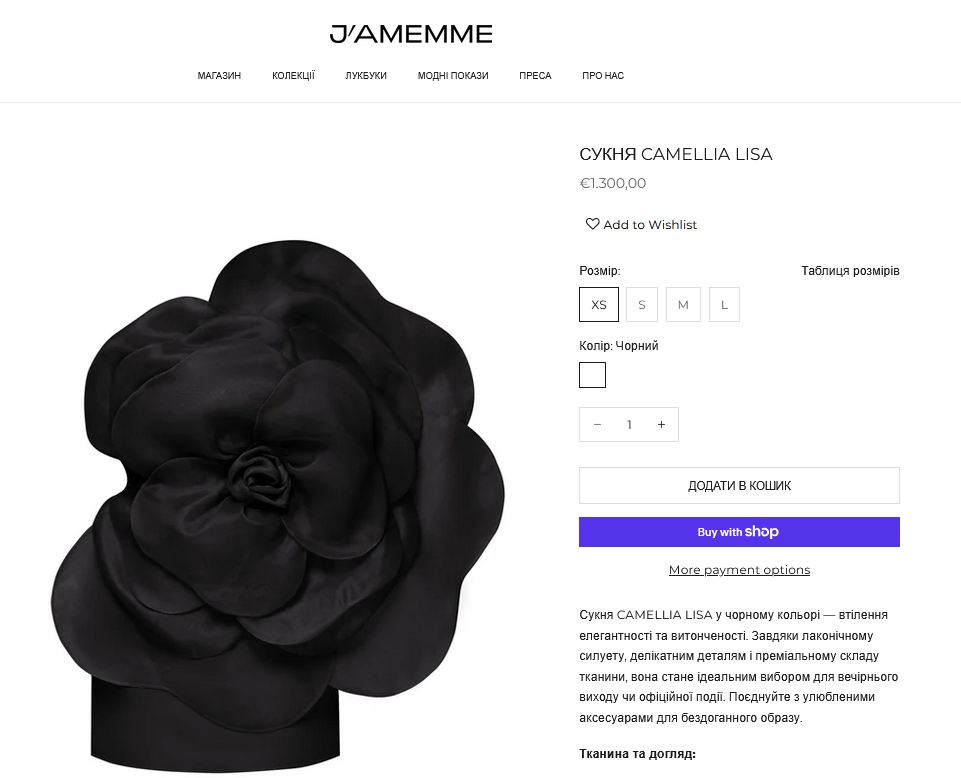 Імовірно, Юлія Ярмолюк натякає на шовкову сукню CAMELLIA LISA, головним елементом якої є квітка Камелія. Модель представлена у багатьох кольорах, зокрема чорному й білому - як у тих "підробках", які носить Наталія Могилевська. Вартість оригінальної сукні становить 1 300 євро (приблизно 62,7 тисяч гривень).