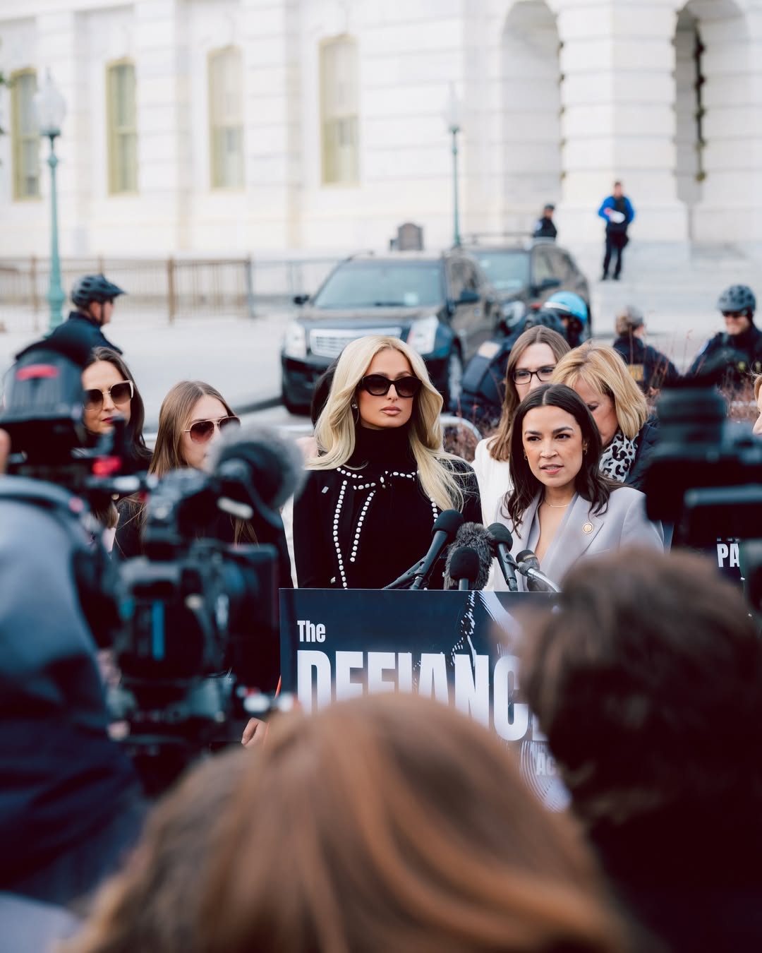 Поруч із Гілтон під час виступу була Александрія Окасіо Кортес, яка відіграє ключову роль у просуванні законопроєкту.