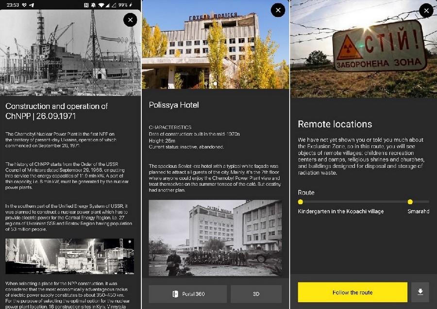 "Ми почали створювати додатки два роки тому - тоді це був прототип, додатку з доповненою реальністю, який ми показали в США на Burning Man, - розповів один з творців Валерій Коршунов. - У ньому близько 150 матеріалів - це така Вікіпедія про Чорнобиль в кишені. Це розширює досвід туристів, які їдуть до Чорнобиля, а також тих, хто через вікові обмеження або карантин не має можливості потрапити сюди".