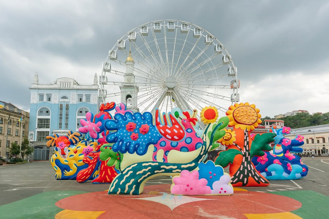 З 8 по 21 вересня на Контрактовій площі у Києві можна побачити інсталяцію мистецького дуета із Нью-Йорка CHIAOZZA, присвячену творчості Марії Примаченко.