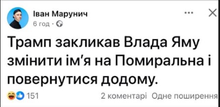 На своїй сторінці у Facebook Марунич обіграв відомий мем про "помиральну яму".