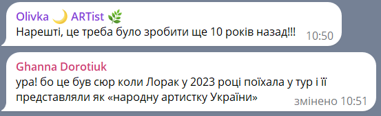 "Ура! Бо це був сюр, коли Лорак у 2023 році поїхала в тур і її представляли як "народну артистку України";