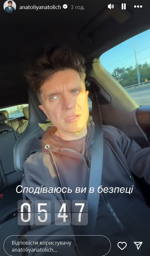 Телеведучий вийшов у "сторіз" о п'ятій ранку, коли їхав на роботу. Він зняв задимлене ранкове місто, проїжджаючи повз свої улюблені локації.