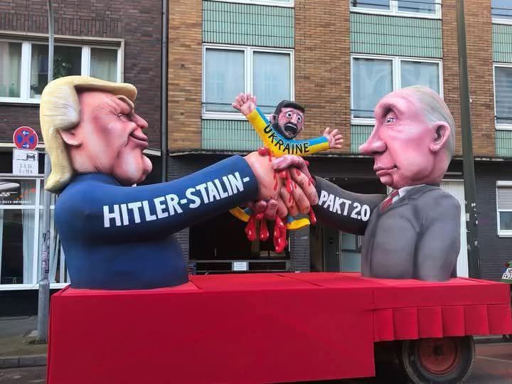 У Дюссельдорфі, що на заході Німеччини, побачили художнє відображення дій президента США Дональда Трампа та російського диктатора Володимира Путіна щодо України.