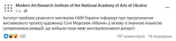 Водночас арт-куратор "Мазні" засудив цькування Соні Морозюк і сказав, що виставку відвідували 40-50 людей щодня й всі були задоволені.