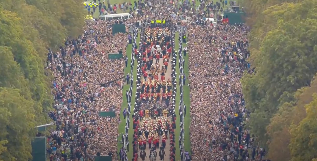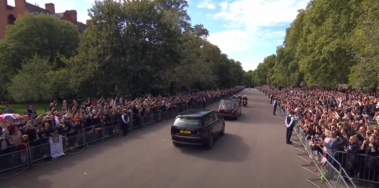 Тисячі людей вздовж всього маршруту похоронної процесії проводжають королеву Єлизавету ІІ в останню путь.