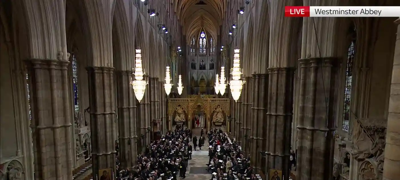 13:00 - Початок панахиди та державного похорону. У Вестмінстерському абатстві зібралися президенти країн, іноземні члени королівської родини та родичі королеви Єлизавети. Службу проводить декан (архіпресвітер) Вестмінстерського абатства Девід Хойл, молитву читає прем'єр-міністр Ліз Трасс.