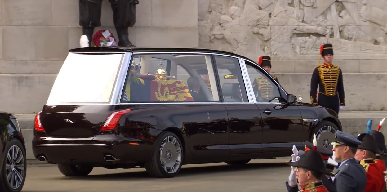 Труну доставлять із Вестмінстер-холу в абатство на офіційному похоронному лафеті, що буксирується 142 моряками Королівського флоту. Традиція походить від похорону королеви Вікторії 1901 року.