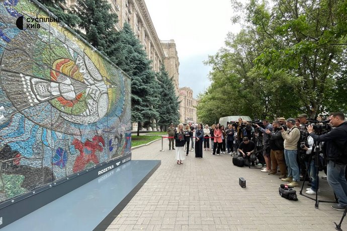 Ми цієї весни зробили потужну річ: знайшли радянську смальту, замовили українським виробникам нову імітацію радянської смальти. Нас консультували мистецтвознавці, дослідники маріупольських мозаїк. Це вперше мозаїка виглядає так, що її можна розібрати по частинах, перевезти в місто, зібрати і вона буде стояти.