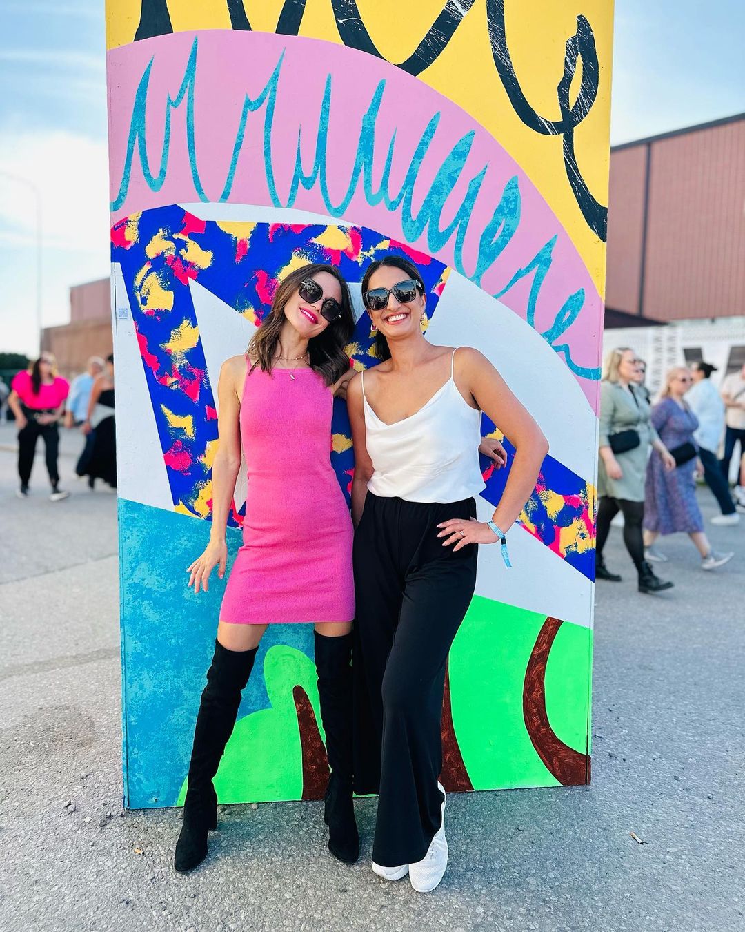 Третій день фестивалю Flow політик відвідала у шкіряній міні-спідниці чорного кольору, короткому рожевому топі та босоніжках на масивній платформі.