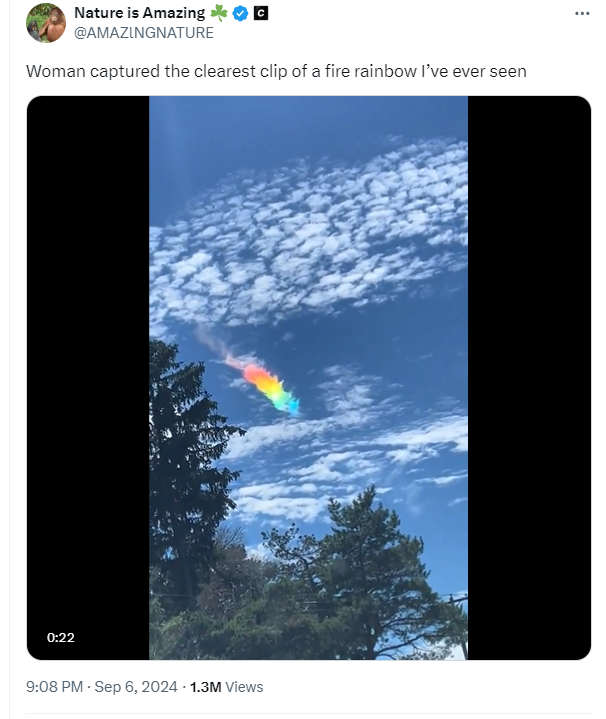 Пізніше відео опублікували на X під назвою "Жінка зняла найчіткіший кліп вогняної веселки, який я коли-небудь бачив", де воно отримало дивовижні 1,3 мільйона переглядів.