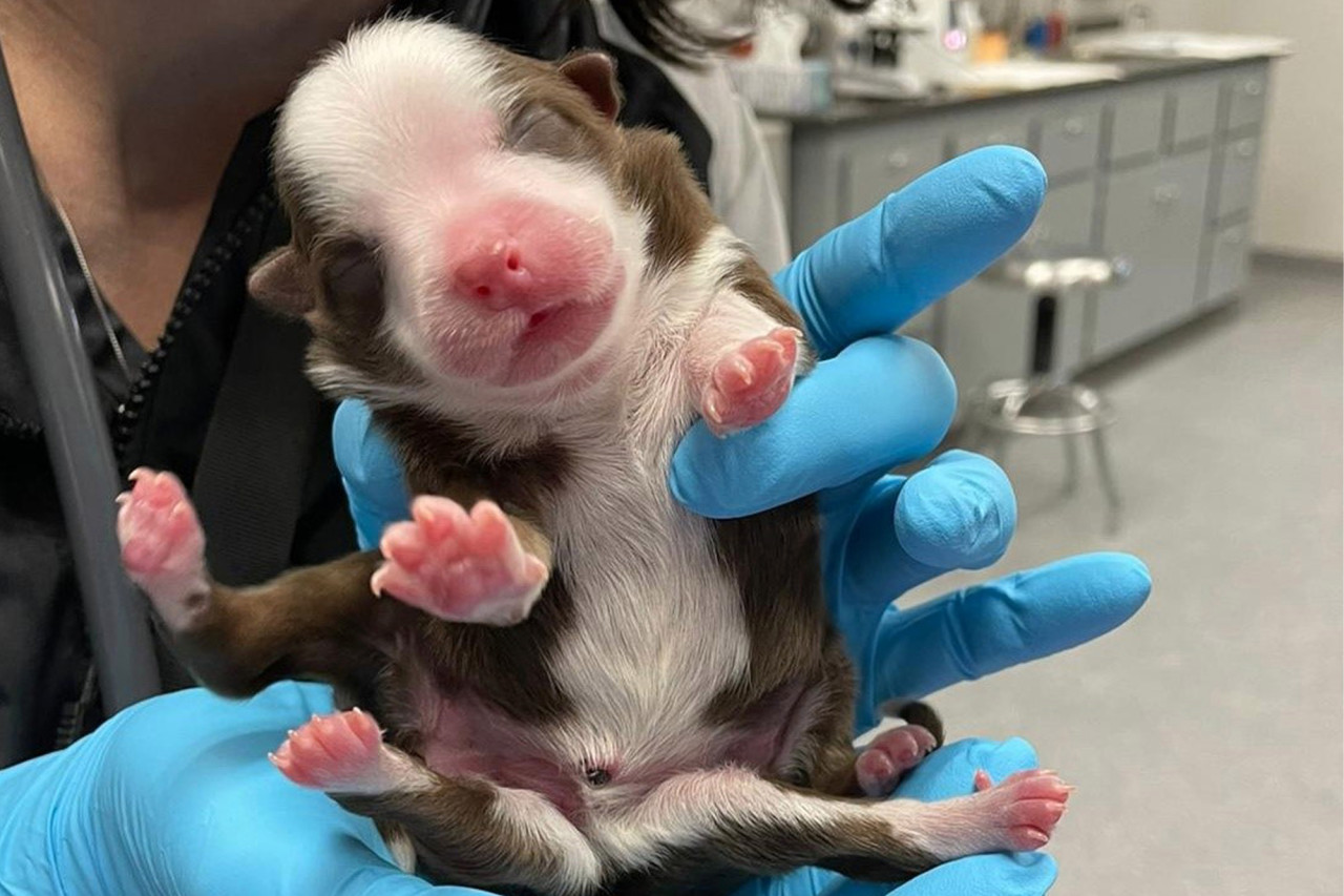Метису бордер-коллі на ім'я Шкіпер всього 8 днів від народження, але ветеринари з лікарні Ніл в Оклахомі (США) вже охрестили її дивом. Все тому, що малятко вважається першим шестиногим щеням, що вижило в утробі матері, пише NY Post.