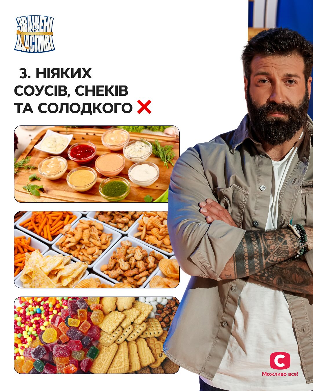 Телеведучий також уточнив, що сказав чітке "ні" соусам, перекусам та солодощам, бо це перші вороги здоров'я, які запускають нехороші процеси в організмі.