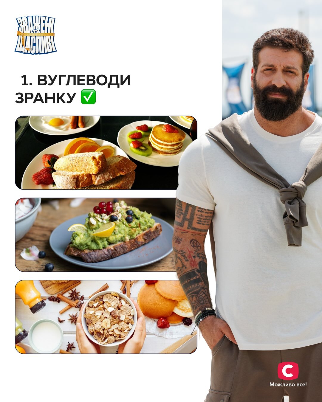 Ведучий шоу "Зважені та щасливі" Даніель Салем, який зворушував історіями з фронту, поділився з шанувальниками своїми правилами харчування. Зазвичай на сніданок військовий їсть складні вуглеводи, які забезпечують тривале відчуття ситості.