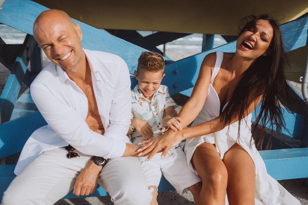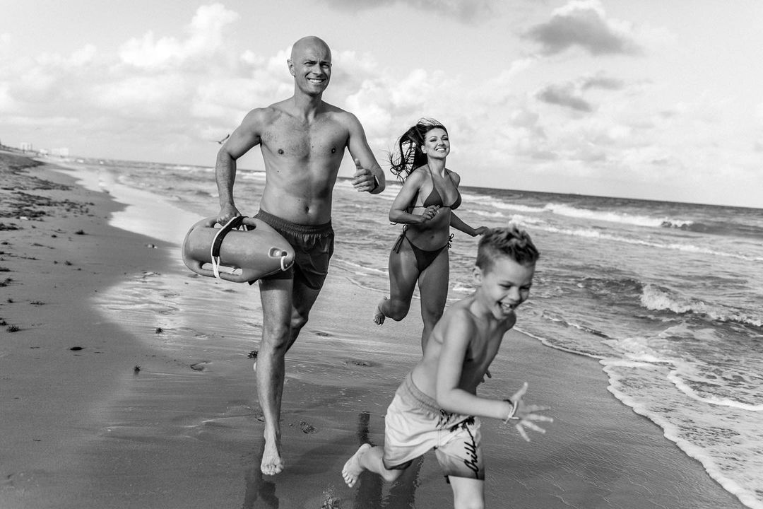 На іншому кадрі видно, що пізніше до подружжя приєднався їхній син Леон. Сімейну фотографію на своїй сторінці опублікувала фотограф, яка зробила пляжні фото.