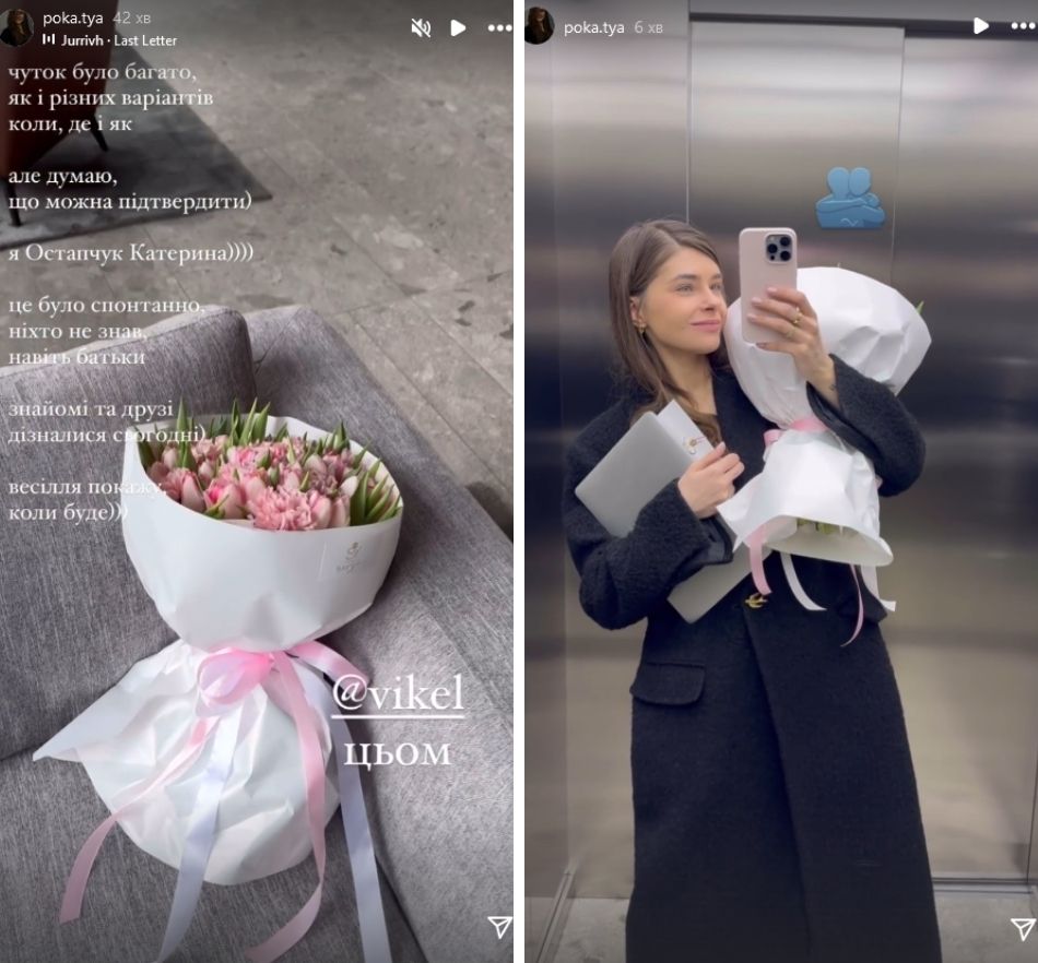 "Чуток було багато, як і різних варіантів: коли, де і як. Але думаю, що можна підтвердити. Я – Остапчук Катерина. Це було спонтанно, ніхто не знав, навіть батьки. Знайомі та друзі дізналися сьогодні. Весілля покажу, коли буде ", - написала вона.