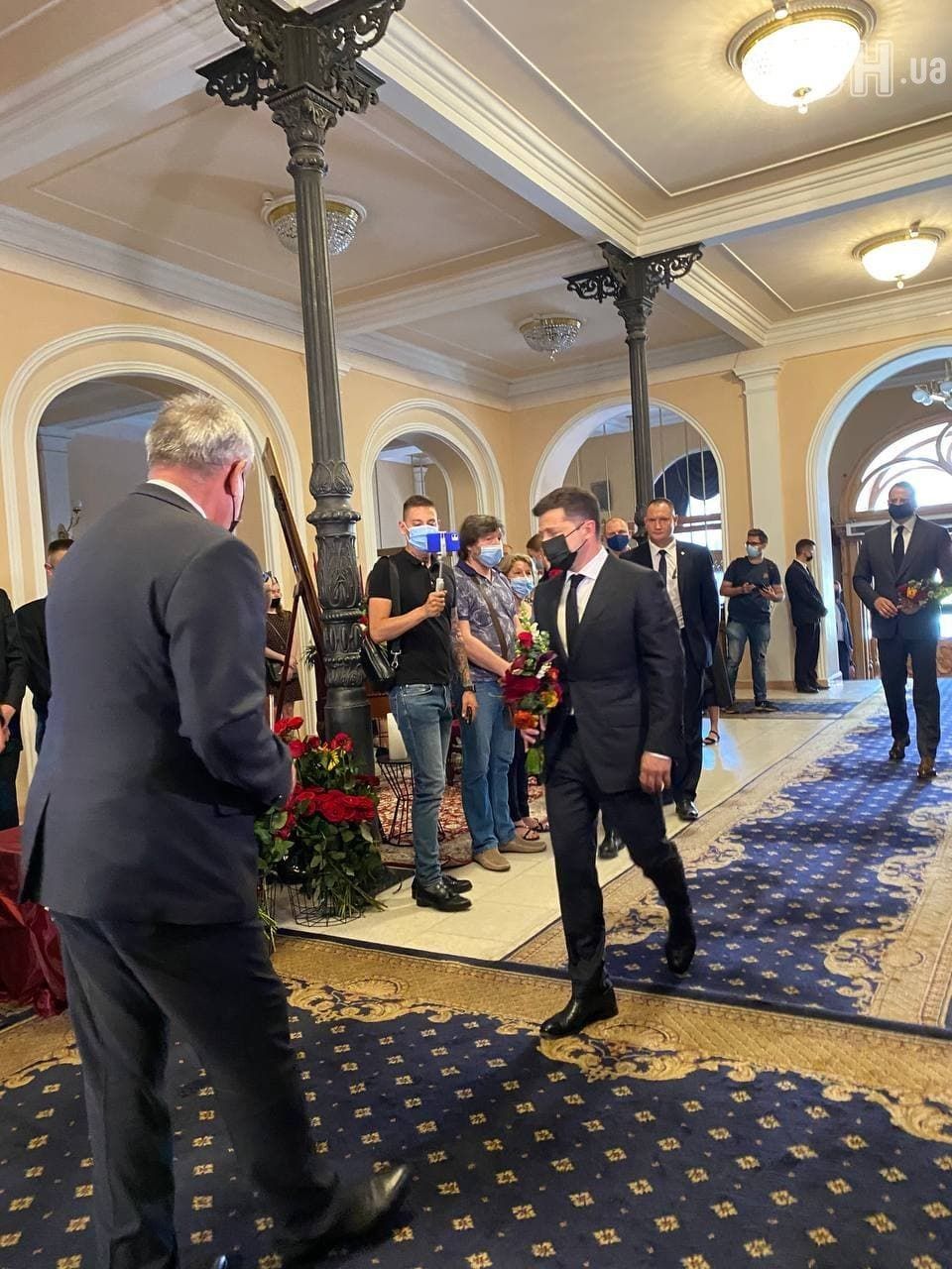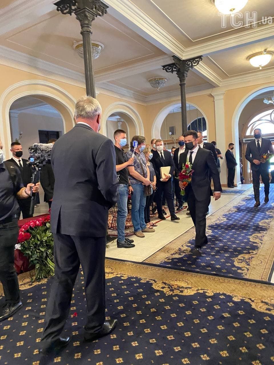 Як передає журналіст ТСН.ua, глава держави разом з керівником ОП Андрієм Єрмаком поклав квіти до труни Чапкіса, після цього він підійшов до родичів танцюриста та покинув Національну філармонію України, де проходить траурна церемонія.