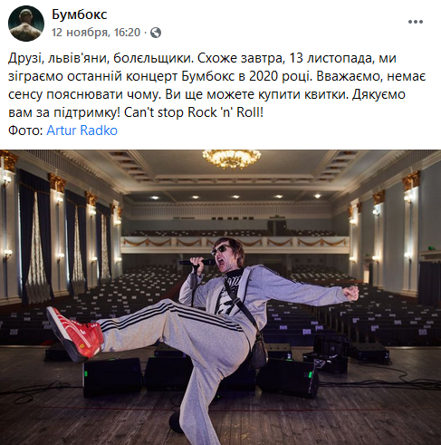 За день до виступу Андрій Хливнюк повідомив , що концерт у Львові відбудеться і він буде останнім в 2020 році. "Друзі, львів'яни, болєльщики. Схоже завтра, 13 листопада, ми зіграємо останній концерт Бумбокс в 2020 році. Вважаємо, немає сенсу пояснювати чому", - сказано на сторінці колективу в Facebook.