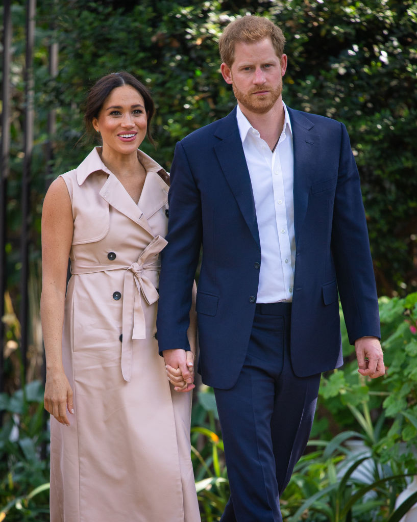 До слова, улюблені сукні Меган Маркл - це всілякі варіації на тему сукні-сорочки, тренча і сукні-жакета. Так, у 2019 році під час африканського туру, в який Меган відправилася з чоловіком і сином Арчі, вона одягала бежеву сукню-тренч демократичної марки Banana Republic. Таке плаття приховало всі недоліки її фігури після народження дитини, а замшеві туфлі-човники візуально подовжили ноги і силует.